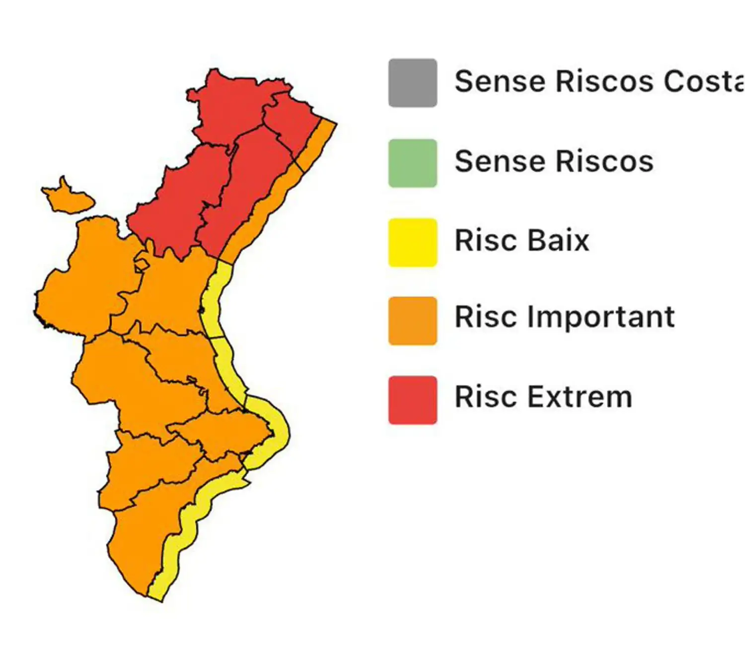 La Conselleria de Emergencias e Interior, a través del Centro de Coordinación de Emergencias de la Generalitat (CCE), ha emitió un nuevo aviso especial tras