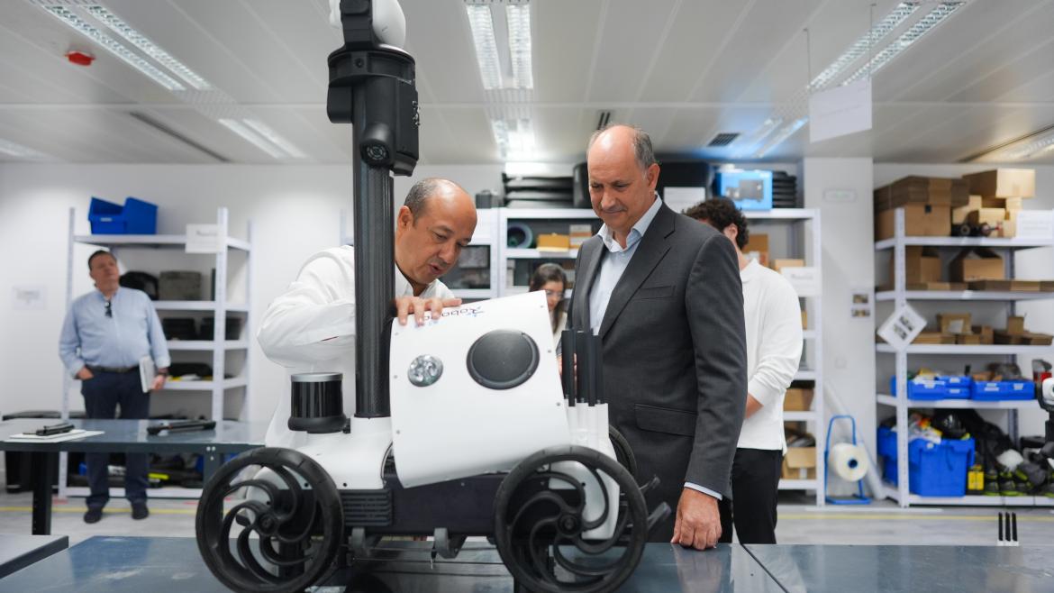 El consejero de Digitalización, Miguel López-Valverde, ha visitado hoy Star Robotics, una de las pymes madrileñas beneficiaria de esta línea de financiación para implementar Inteligencia Artificial. En este caso, han aplicado esta tecnología en una flota de robots que asiste a los equipos de vigilancia y seguridad en superficies como centros comerciales o centrales eléctricas.