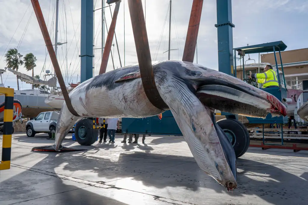 Aparece sin vida una ballena de 9 metros en la bocana del Real Club Náutico de Valencia