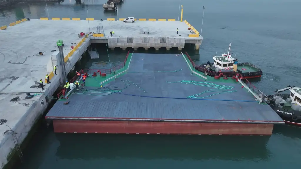 La rampa flotante para mejorar las operaciones en el Puerto de Santander llega al muelle de Raos 9