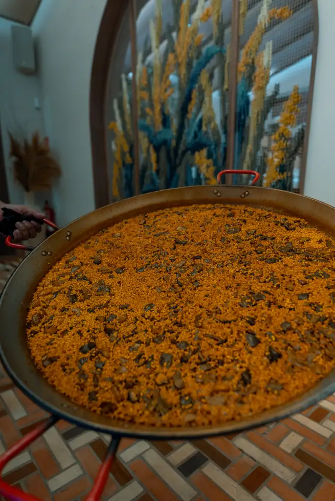Uno de los elementos más comentados fueron las paredes interiores, realizadas con arroz real mediante una técnica de pintura mural desarrollada por el artista Juan Carlos Forner. El grano, símbolo de la cultura valenciana, trasciende así su papel en la cocina para convertirse también en materia artística y arquitectónica.