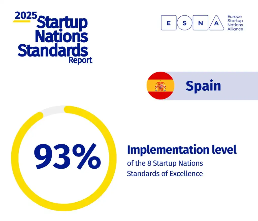España se sitúa entre los países europeos más avanzados en el impulso al emprendimiento innovador, alcanzando un 93% de implementación de los Startup Nations Standards
