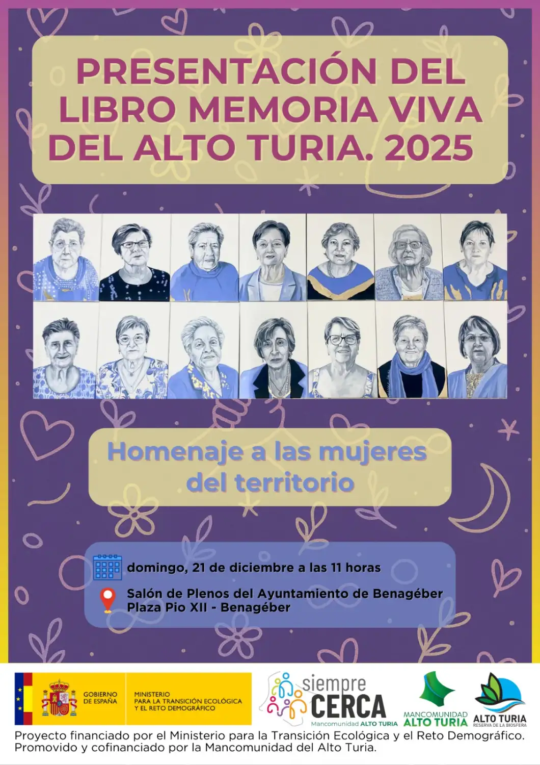 La Mancomunidad del Alto Turia celebrará el próximo domingo 21 de diciembre de 2025, a las 11:00 horas, en el Salón de Plenos del Ayuntamiento de Benagéber, el acto de presentación del libro Memoria Viva
