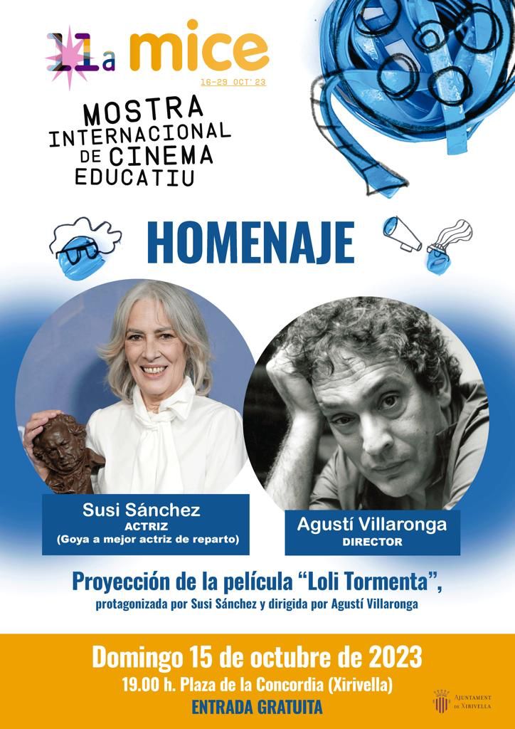 El ayuntamiento de Xirivella homenajeará este domingo día 15 a la actriz Susi Sánchez que cuenta con importantes reconocimientos en el mundo cinematográfico y de las artes escénicas, entre los que destacan dos Goyas en